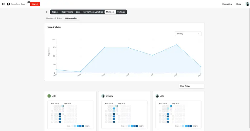 Squadbase combines its built-in authentication and logging features to analyze and visualize user activity, giving you actionable analytics right out of the box.