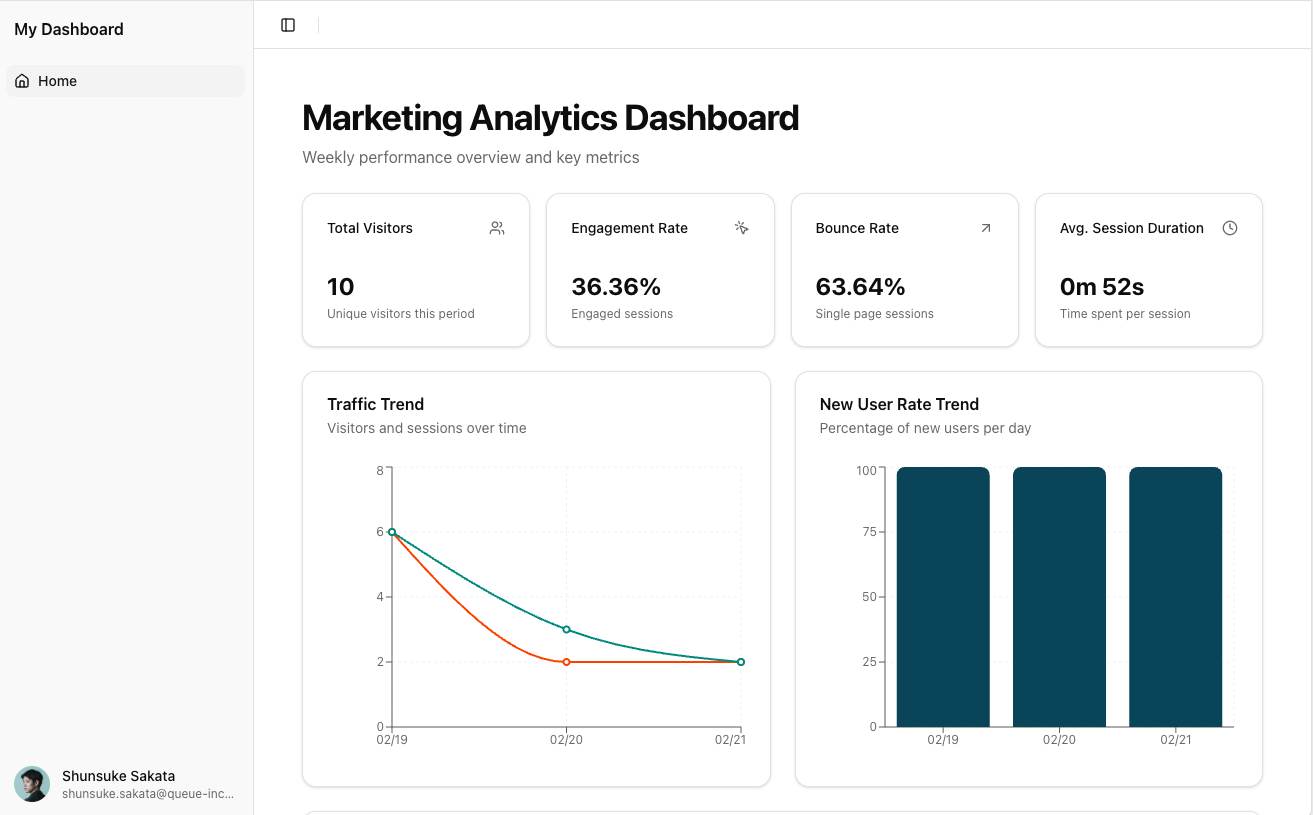Squadbase's AI will then automatically analyze the BigQuery data and build a dashboard based on the instructions you provided during project creation.