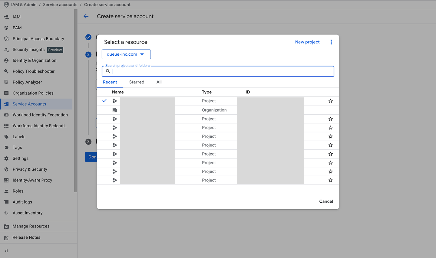 - Service account ID: This is auto-populated based on the service account name.