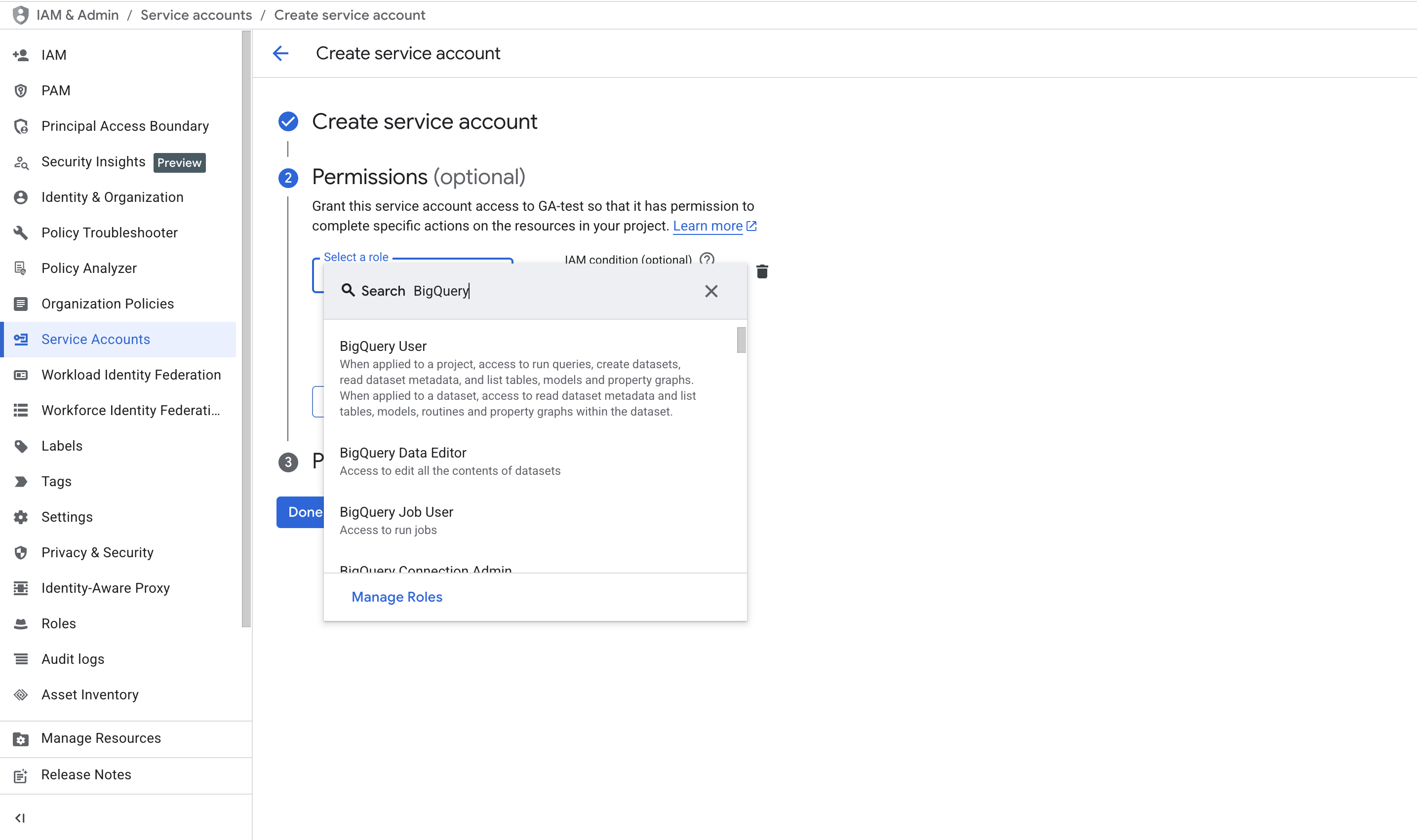 This completes the service account creation.