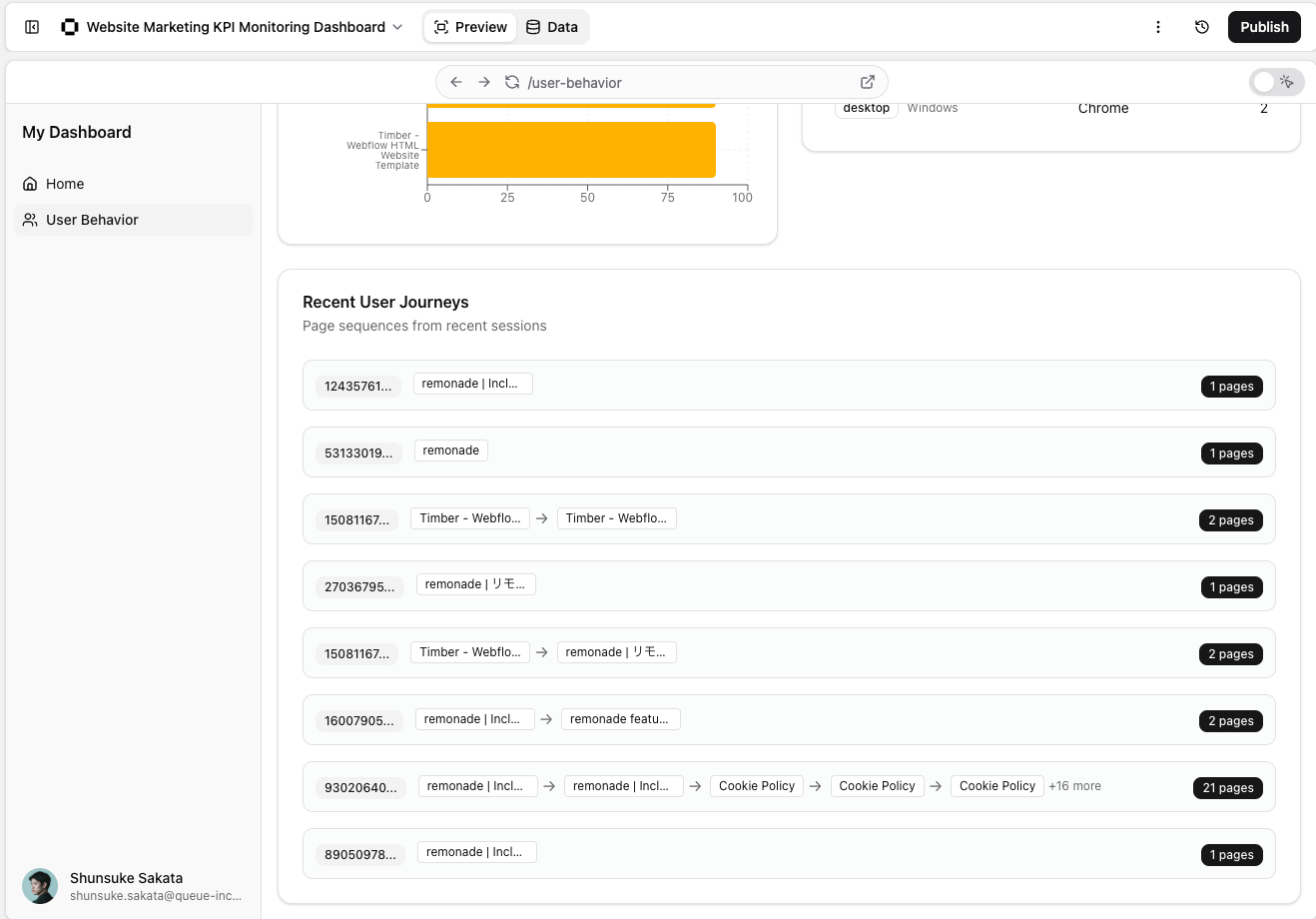 By transferring data from BigQuery, you can also visualize user behavior — such as which pages users navigated from and to.