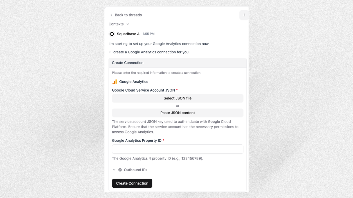 Step 1: Connect Squadbase with GA4 (Approx. 5 minutes)