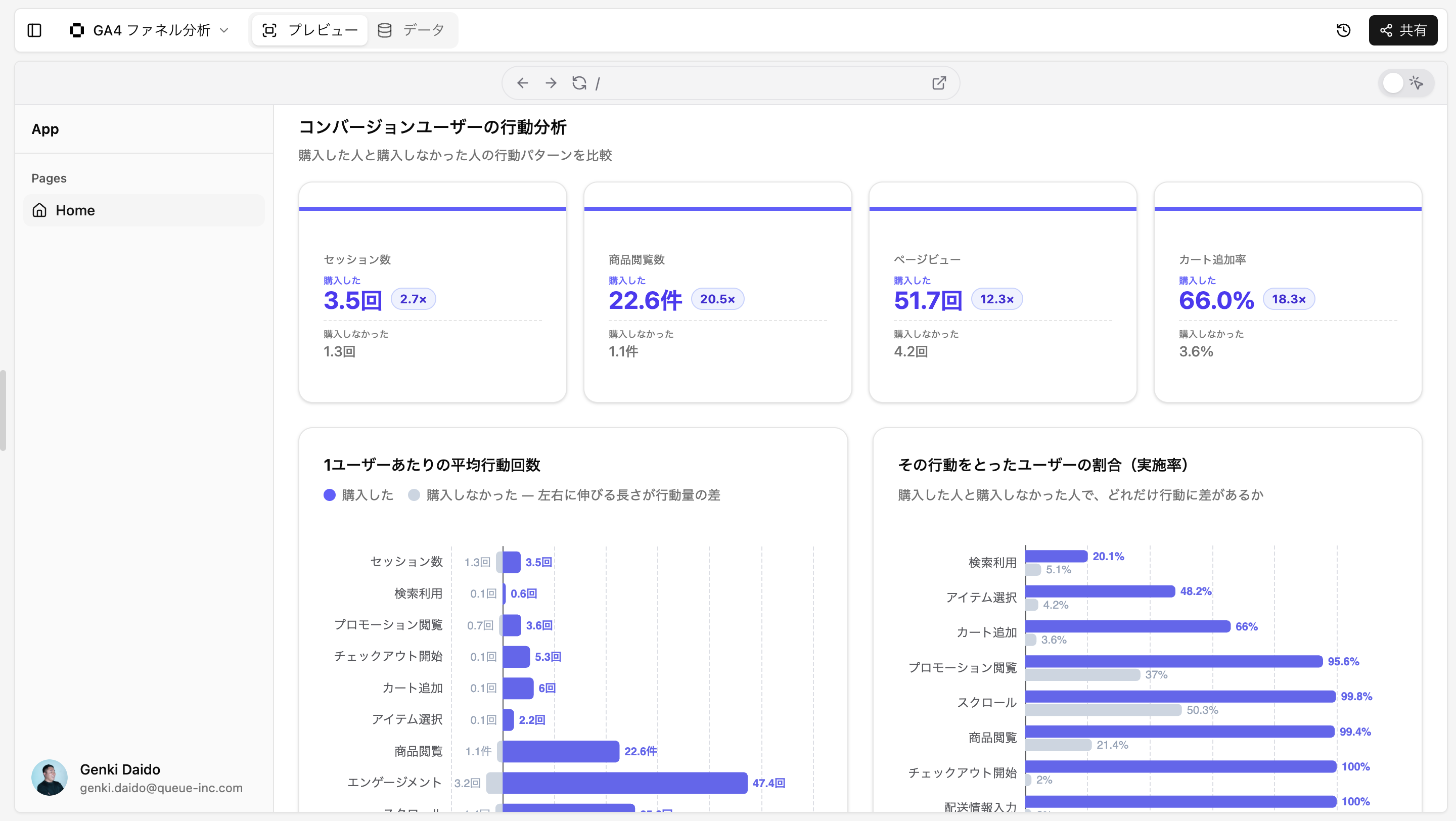 このように、コンバージョンに至ったユーザーとそうでないユーザーの行動の差を示したダッシュボードが追加されれば成功です。